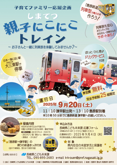 島原鉄道の「カフェトレイン」車両に乗って、島原駅まで楽しくお出かけしませんか? 車内では、お弁当を楽しみながらガイドさんの案内を聞いたり、ボランティアと一緒に工作体験、大三東駅での写真撮影など盛りだ…